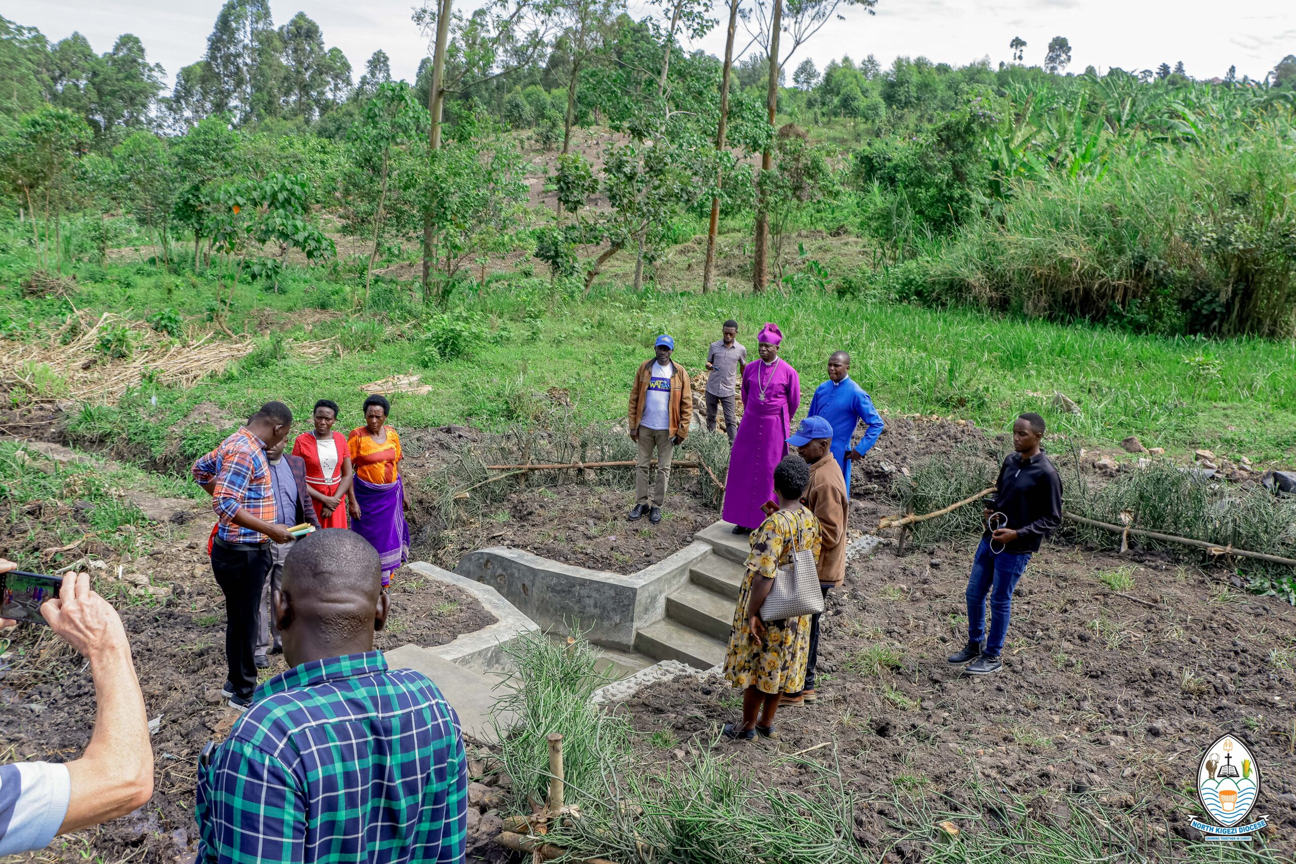 The Bishop of North Kigezi diocese, the Rt. Rev. Onesimus Asiimwe, has commissioned a newly constructed protected water spring in Rwaibare Cell. The spring was built by North Kigezi Diocese WATSAN (NKKD WATSAN) with support from the WATSAN UK Support Group, bringing safe and clean water closer to the community.